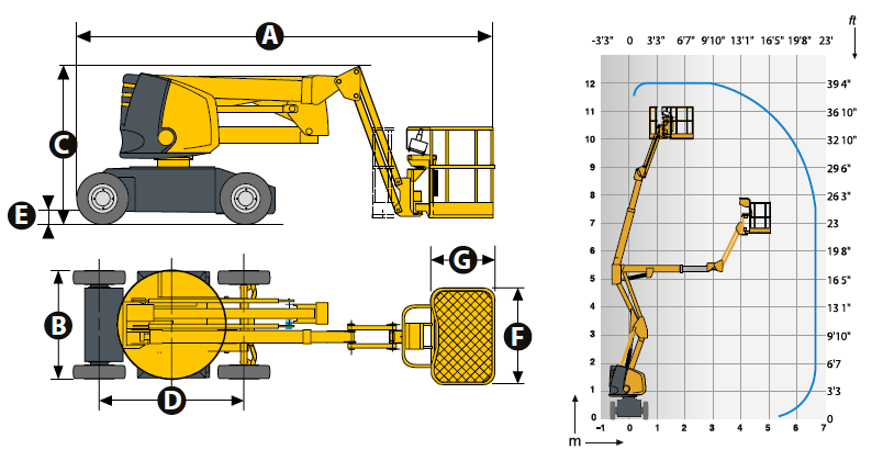 במות זרוע פרקיות חשמליות מדגם IP של חברת אוֹלוֹט (HAULOTTE) הצרפתית, הן במות הרמה בעלות זרוע מתכווננת (arm) ובנוסף לכך מנוף (boom) וטלסקופ שיוצא מתוך המנוף, המגדיל את המרחק אליו ניתן להגיע עם פלטפורמת (סל) העבודה. הזרוע המתכווננת והמנוף מעניקים לבמות אלה גמישות מרבית בעת העבודה בגובה.